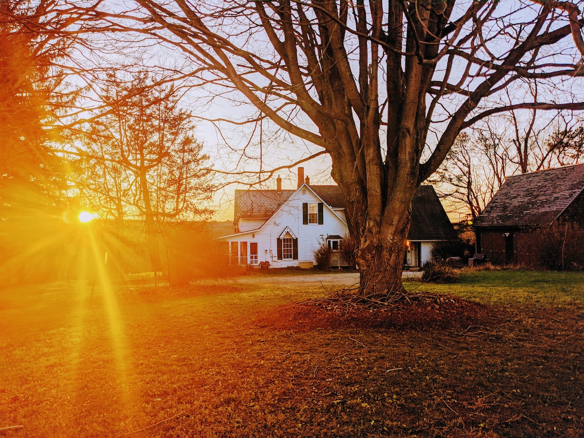 Al costat del Kenyon College, a pocs passos del poble de Gambier. L'encant del segle XIX, els serveis del segle XXI. Recentment renovat: aire central, gran sala, cuina gourmet totalment equipada, electrodomèstics d'alta gamma, armaris personalitzats. Preciós pati privat envoltat de magnífic terreny boscós. 3 Reis, capacitat per convertir 2 en 4 bessons. Banyera principal fabulosa: dutxa enorme, banyera independent, tocadors i vàter. Ideal per visitar pares i professors, reunions universitàries, graduacions o una escapada tranquil·la.