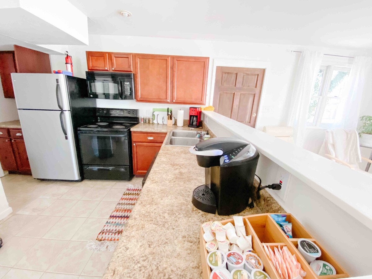 Et donem la benvinguda a aquest nou i encantador pis situat entre els arbres a la vibrant zona de South Knoxville de Knoxville. M'encanta allotjar gent, a casa meva, al meu Airbnb a Milà i finalment al nostre Airbnb a Knoxville. El pis és lluminós i espaiós, amb moltes finestres i envoltat d'un gran arce i noguera, que li dona una sensació d'arbre. La cuina oberta està totalment equipada, el bany disposa d'una gran dutxa amb claraboia i el dormitori. Hi ha un espai a l'aire lliure acollidor per als hostes.