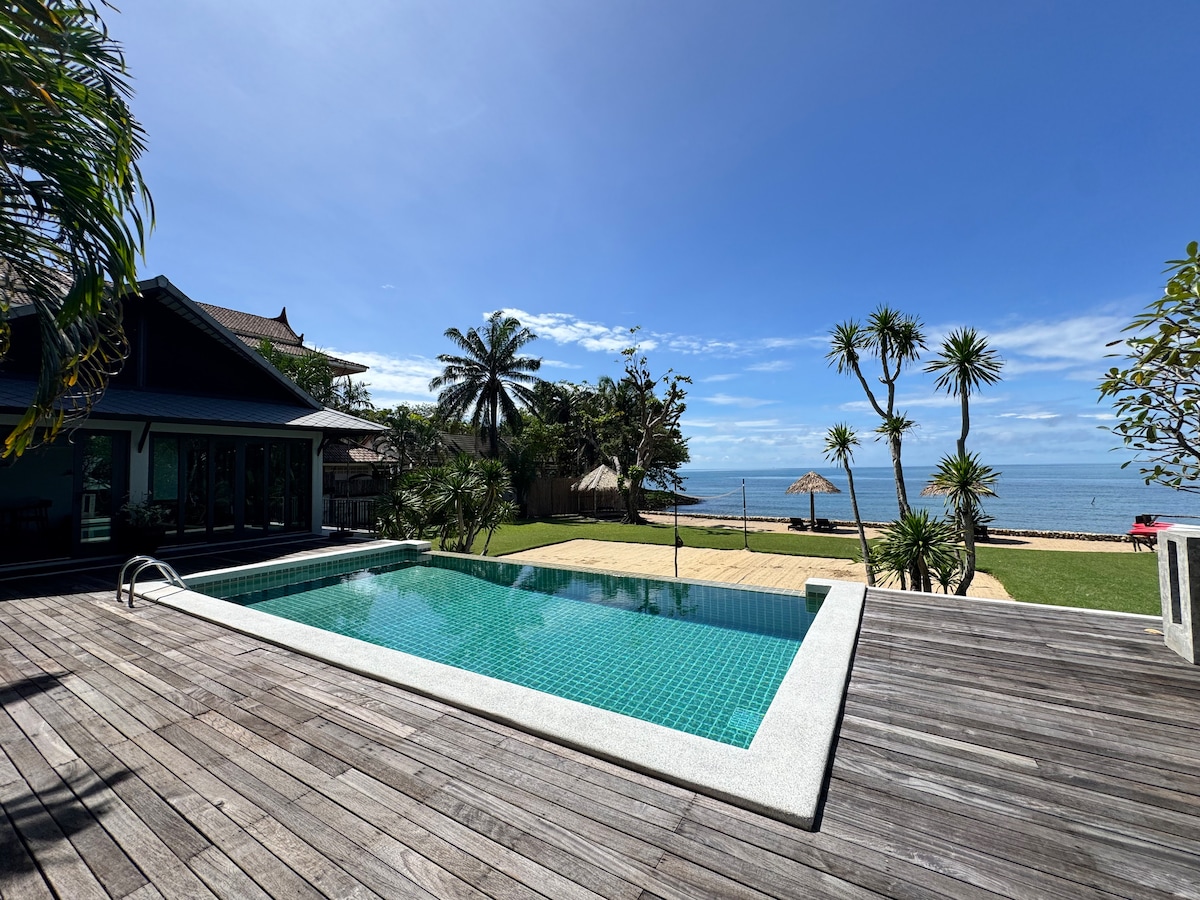 -Exclusive Strand-Pool-Villa Thai Styl -5 Zimmern /bad mit Pool direkt am Strand. -Wifi in allen Räumen -Platz für bis zu 10 Personen -Küche voll ausgerüstet mit Nespresso Kaffeemaschine, Backofen, Mikrowell und Geschirrspühler -Garten stehen die Liegestühle bereit. -Alle Zimmer (mit Safe) der Villa haben einen privaten Eingang -2 Master Bedrooms im 1. Stock mit Aussenbad. STROM & WASSER WIRD NACH ZÄHLER ABGRECHNET Stromkosten pro KHW 6 Baht Wasserkosten pro m3 85 Baht