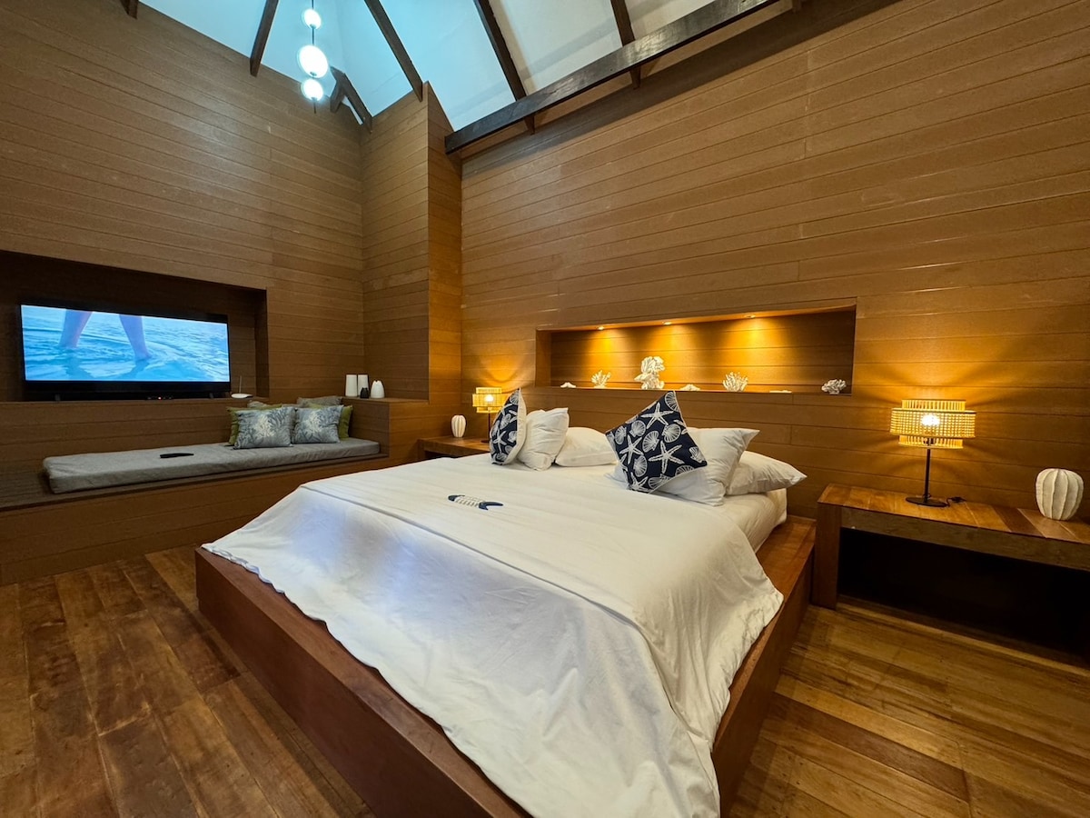 Situat a l'illa remota de Koh Mak, aquest bungalou (estrictament per no fumar) és perfecte per relaxar-se i gaudir de la vida de l'illa. El bungalou de dos dormitoris (has d'entrar al segon dormitori per entrar al bany). La casa està a només uns minuts a peu de les platges i els restaurants. Gaudeix de la piscina, el gimnàs i les instal·lacions de ioga. Aconsegueix un 20% de descompte per a les classes de Muay Thai i accés gratuït a la platja al nostre complex germà White Sand Beach. A més, el tennis i el pickleball estan disponibles de forma gratuïta.