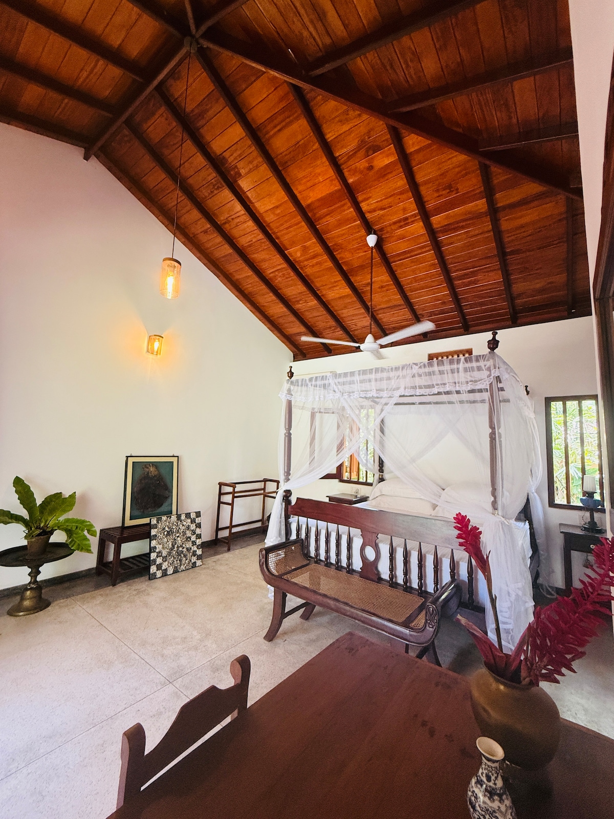 Amagada en una zona verda i exuberant, trobaràs la «caseta» al llac Kogalla, a menys d'1 km de la platja. La vil·la és privada i té una de les millors vistes del llac. Bungalou d'un antic polític restaurat amb molt de gust per oferir una experiència autèntica a Sri Lanka. La vil·la té 3 habitacions amb bany i vistes al llac. La suite principal és impressionant! La vil·la inclou el teu propi majordom (Yohan) i xef a petició. 8 minuts 🚶 de la platja (600 m) 10-15 min - Ahangama 15 min - Unawatuna A 15-20 minuts de Weligama