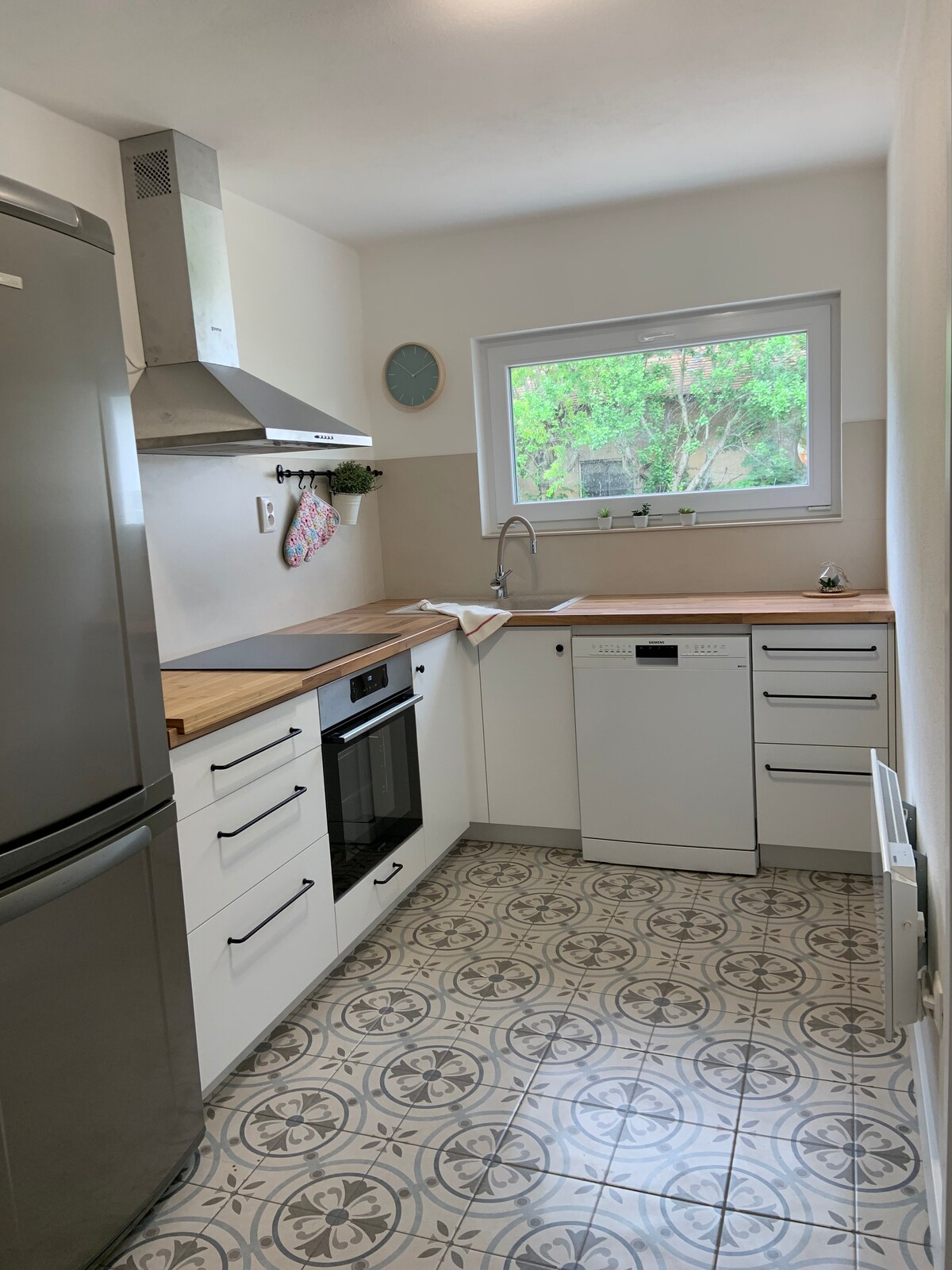 Brand new modern apartement with separated entrance. 3 minutes walk from city centre. Guest have the full apartement, 5 guest and 1 truckle bed possible if needed. Frissen felújított teljes ház modern berendezéssel 90 nm várja vendégeit. A ház 600 méterre található Győr belvárosától. A vendégek számára rendelkezésre áll 3 szoba melyben 5 fő +1 pótágy kényelmesen elfér továbbá saját konyha és zuhanyzós fürdőszoba is. A lakáshoz tartozik egy 15 nm terasz. Ingyenes parkolási lehetőség.