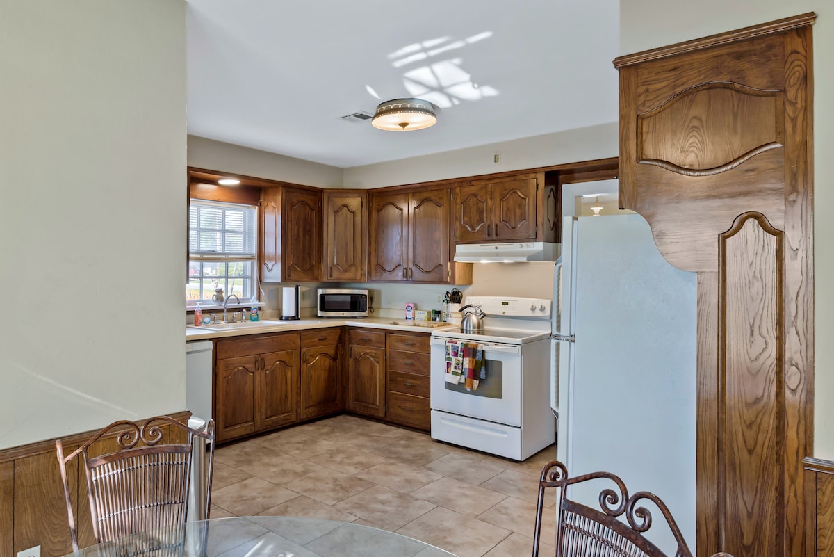Gaudeix d'un entorn tranquil en 5 acres amb un estany de pesca proveït. 1 dormitori (llit addicional doble)/1,5 banys amb rentadora i assecadora per a estades llargues. A prop dels camps de pilota locals si viatges amb un equip. Wifi de fibra òptica, televisors, cuina completa, llit «king size», totalment moblat i refugi contra tornados recentment afegit. Els endolls estan disponibles per connectar el carregador EV. Millorem constantment aquesta propietat. Estem encantats de compartir una mica del nostre paradís amb altres persones! S'accepten animals de companyia amb la tarifa aplicable.