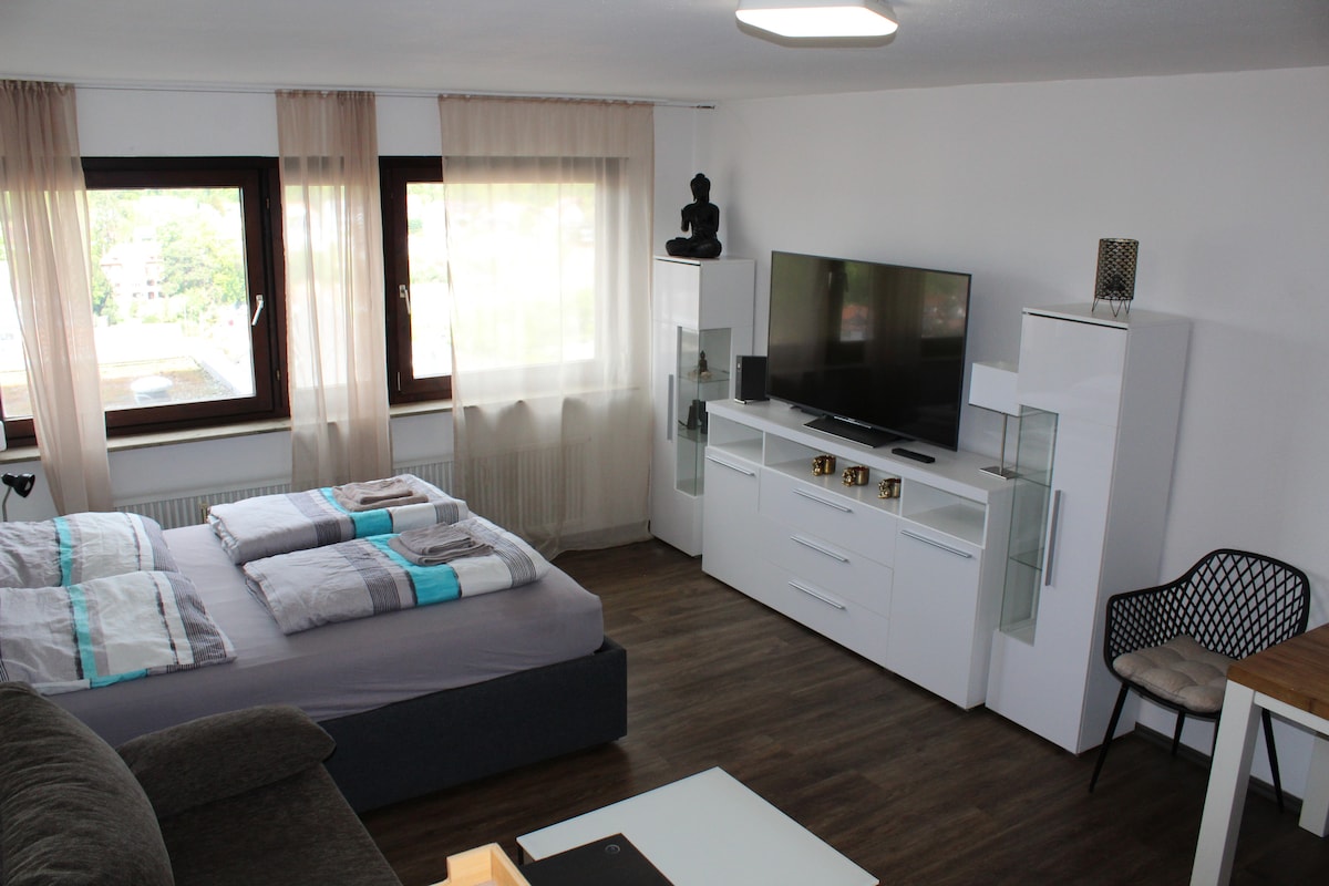 Tranquil·litat tranquil·la, les vistes de la vall i el bosc, mobles d'alta qualitat i un gran balcó: pura gaudi. Rutes de senderisme a la porta de casa i restaurants fantàstics, així com el balneari de Bad Teinach, tot per gaudir d'una estada relaxant i agradable. L'apartament d'1 habitació totalment equipat és el lloc perfecte per relaxar-se, estar actiu a la natura dels voltants o explorar ciutats com Nagold, Wildberg o Calw.