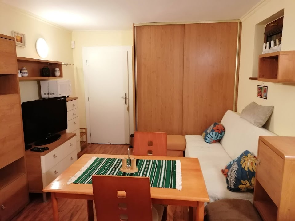 L'apartament STUDIO es troba al tranquil complex Rezidencia Albelli, amb mobles completament nous i un llit «queen size» (160x200 cm). L'equipament i els serveis inclouen un balcó amb un sofà a l'aire lliure, aparcament gratuït, un jardí privat i una botiga de queviures. El carrer principal està a 12 minuts a peu, i l'apartament té persianes i una mosquitera per a la comoditat.