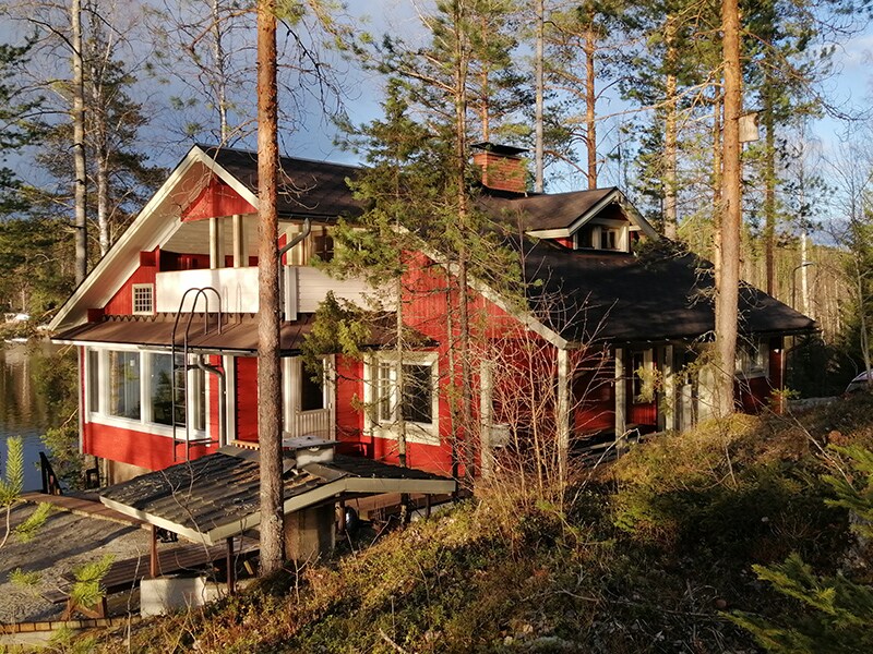 L'allotjament vacacional Hirviniemi està situat al costat del llac, en una gran i lluminosa península, a 250 metres del veí més proper. Des de l'edifici principal fins a la platja, a 20 metres, al pati hi ha un espai d'allotjament addicional de 2 habitacions per a 8 persones i es lloga només amb l'edifici principal com a espai addicional i així tot el conjunt forma espais bons i còmodes perquè 1-4 famílies vagin de vacances o fins i tot per a reunions de fins a 20 persones. Sauna separada al costat del llac, barbacoa i lloc de foc cobert a l'aire lliure, moll de 2 peces i vaixell de rem.