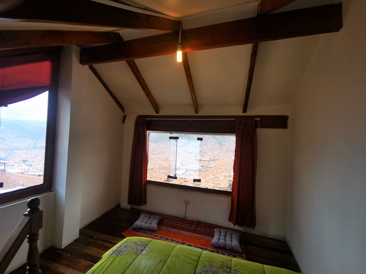 S'anomena Casa Mirador perquè tindràs una vista privilegiada de la ciutat des del dormitori o des de la teulada. Per agafar el cotxe, et deixarà a 1 minut de l'apartament. Si ho prefereixes, pots caminar des de la plana de Sant Blas (10 minuts) amunt o avall per les escales. lloc tranquil (ZONA SEGURA) i cèntric(límit del centre històric) perquè puguis gaudir de Cusco. a prop de llocs turístics perquè puguis recarregar energia. Recollida a l'aeroport o a la terminal terrestre. Qutiza: fes una ruta amb nosaltres