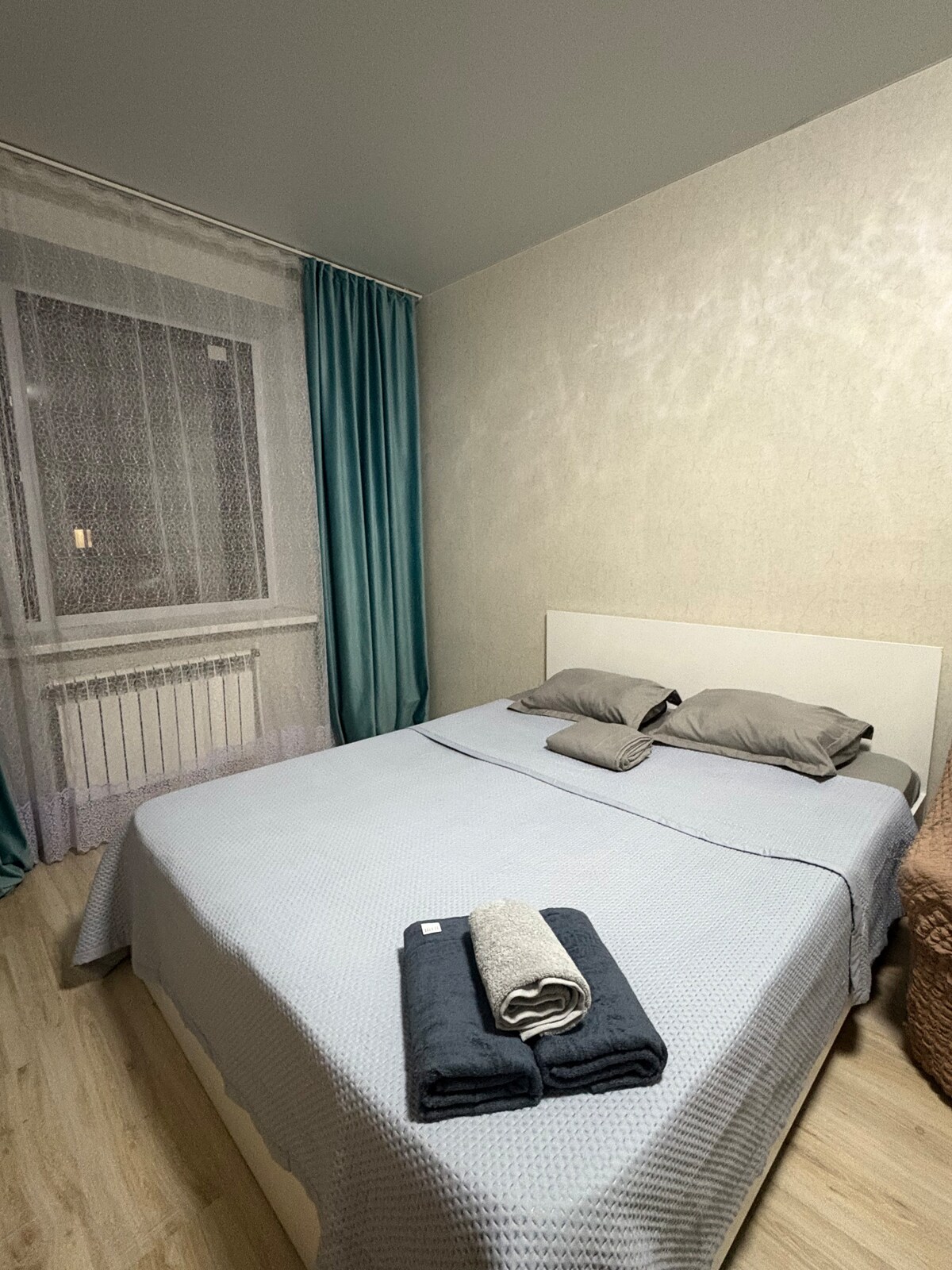 Llogaré un pis d'un dormitori en una casa nova del microdistrit de Berke! L'apartament està equipat amb tot el necessari per a la teva estada i durant els teus viatges. Aquest pis és perfecte per a 1 o 2 persones. A la teva disposició hi ha: - llit doble amb matalàs ortopèdic - Televisor intel·ligent Internet d'alta velocitat - Cuina equipada amb estris i estris de cuina. - Cuina (forn) - forn microones - Nevera - bullidor d'aigua elèctric - Assecador - Roba de llit, tovalloles