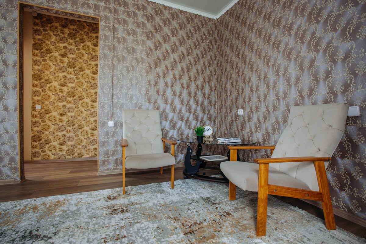 Has arribat a Kostanay? Allotja't als nostres acollidors apartaments a prop del centre comercial Kostanay Plaza! 🛌 Què oferim? - Dormitoris còmodes: llits acollidors i roba de llit fresca. - Els serveis moderns inclouen televisor intel·ligent, aire condicionat i wifi gratuït. - Cuina totalment equipada: tot el que necessites per cuinar els teus àpats preferits. Neteja i endreçat: tovalloles netes i productes d'higiene al bany. No esperis, reserva el teu pis ja