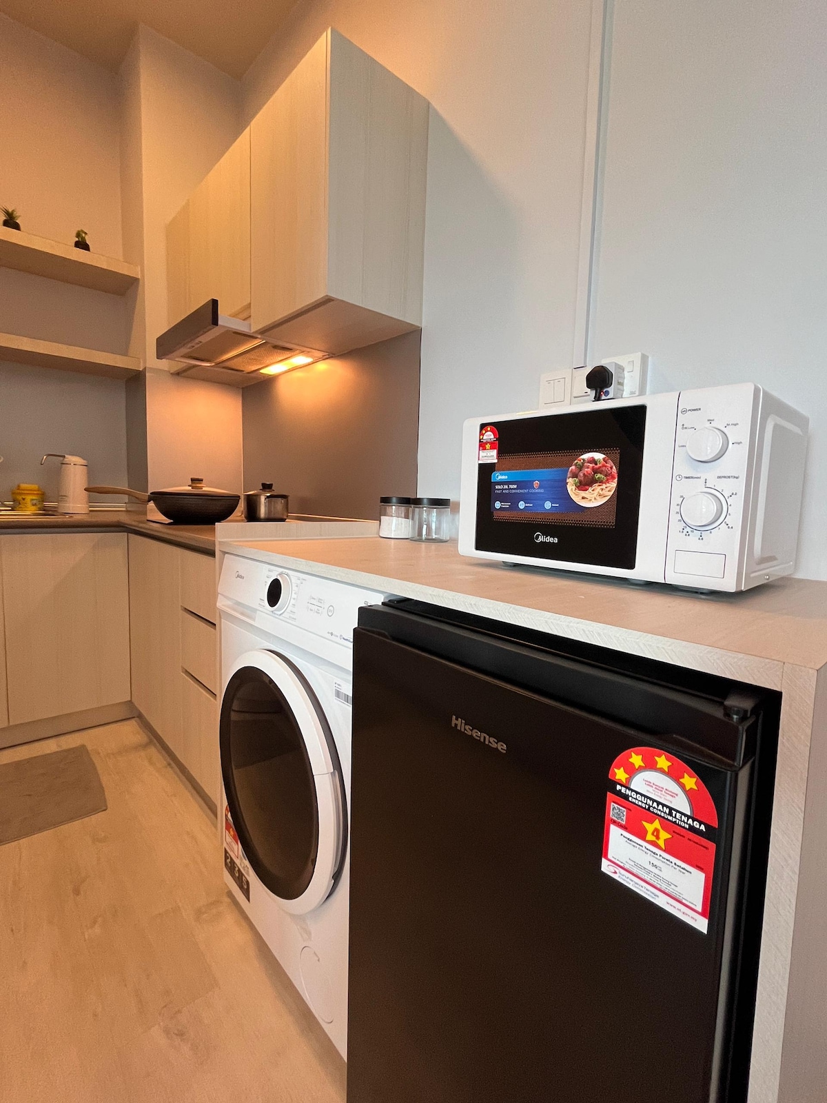 Aquest espai d'última generació es troba al cor de Kota Kinabalu, Sabah. La suite està ben equipada i és adequada per a amics i famílies. És espaiós, modern i luxosament reformat amb una magnífica vista al mar. El més important és que la vista impressionant de la posta de sol de la sala d'estar i també és accessible amb targetes d'accés intel·ligents per als ascensors i la porta d'entrada.