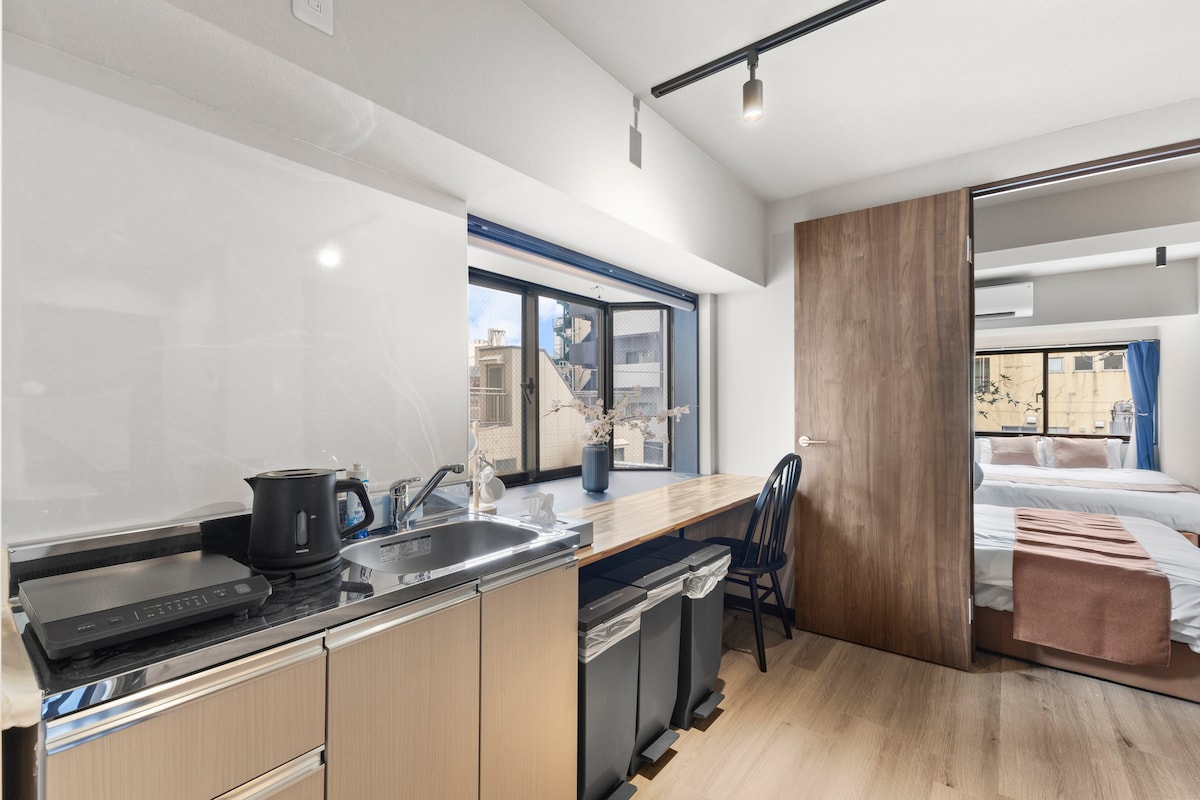 Pau i tranquil·litat · Estudi Japandi de nova construcció | A prop de JR i del metro | Rentadora i assecadora | Ascensor | Emmagatzematge d'equipatge