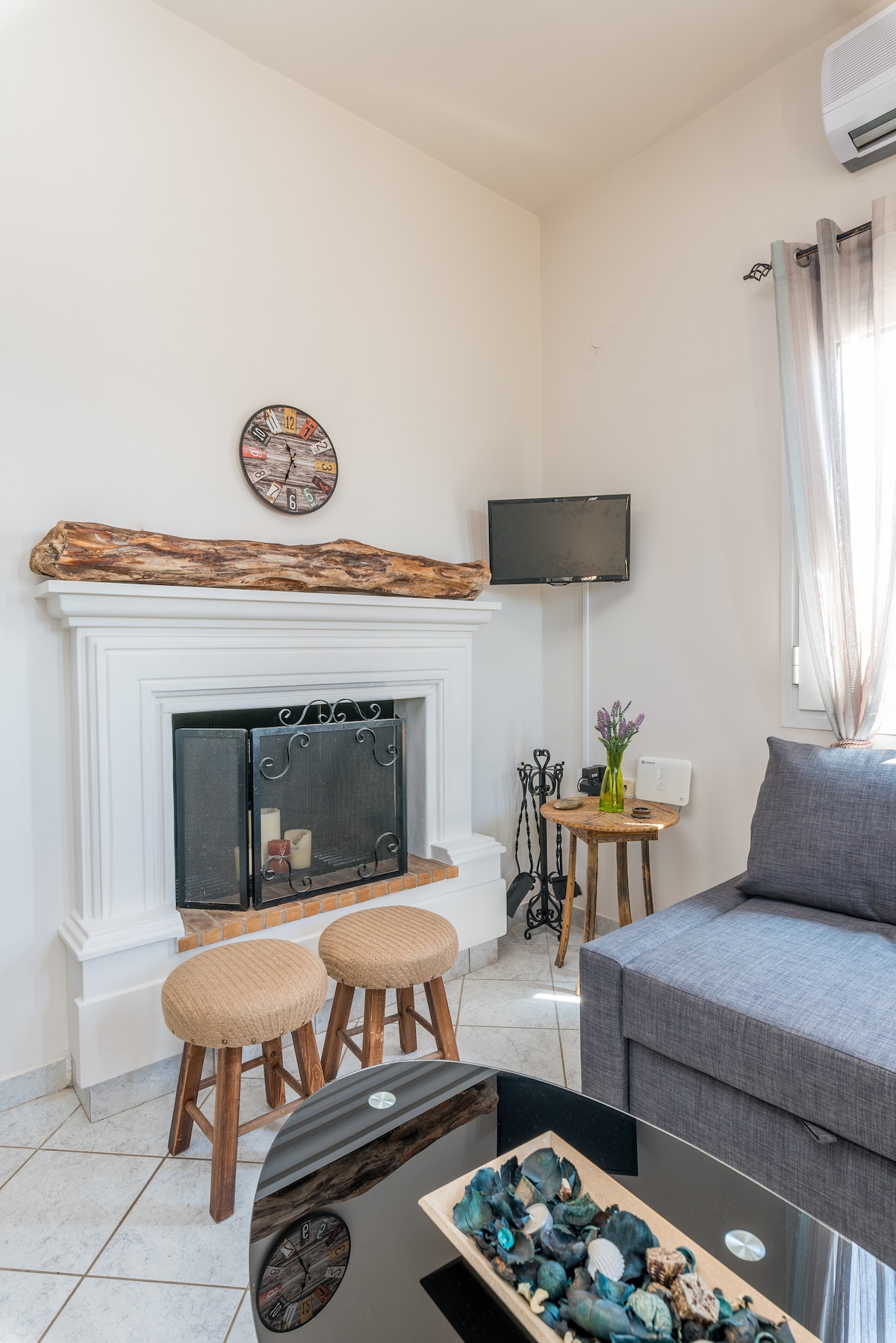 Bonic pis amb 2 dormitoris, sala d'estar, menjador, cuina i vàter. També hi ha un sofà llit a la sala d'estar, que pot dormir amb dos nens petits. Decorat amb elements grecs, totalment moblat, que proporciona no només els elements bàsics, sinó també tot el que necessites per a la teva estada. Compta amb aire condicionat en un dormitori.