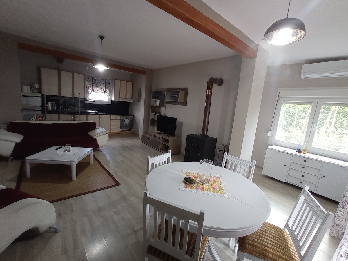Gaudeixi de la seva estada en una casa al costat del mar amb una gran terrassa i molt a prop de les tavernes del poble. Una casa totalment equipada amb 2 dormitoris amb aire condicionat i un sofà que es converteix en llit. Disposa de cafetera, bullidor, torradora i televisor amb Netflix. La platja de "Platanes", on es troba l'Aquapark Maries, està a 100 metres, mentre que la platja d'"Atspas" està a 900 metres.