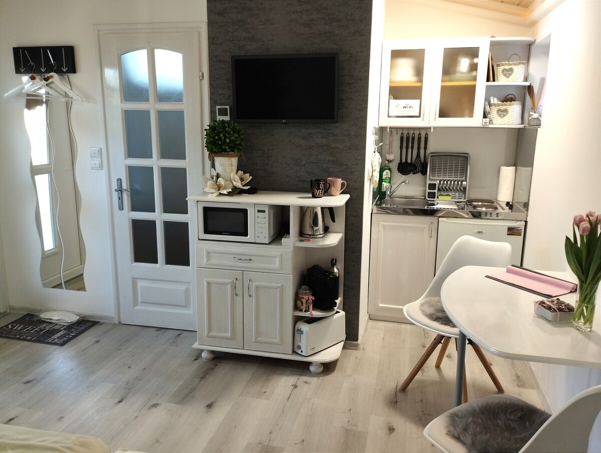 Relaxa't en aquest espai acollidor i elegant. L'apartament estudi consta d'una zona de cuina amb menjador i espai amb llit. El bany petit està separat per una porta. L'estudi està acabat de reformar i totalment equipat, amb aire condicionat i disposa d'una internet wifi inoblidable. Si es requereix aparcament, és obligatori reservar el mateix quan es reserva un pis (situat al garatge subterrani de l'estació d'autobusos) i s'ofereix una targeta d'ús gratuït.