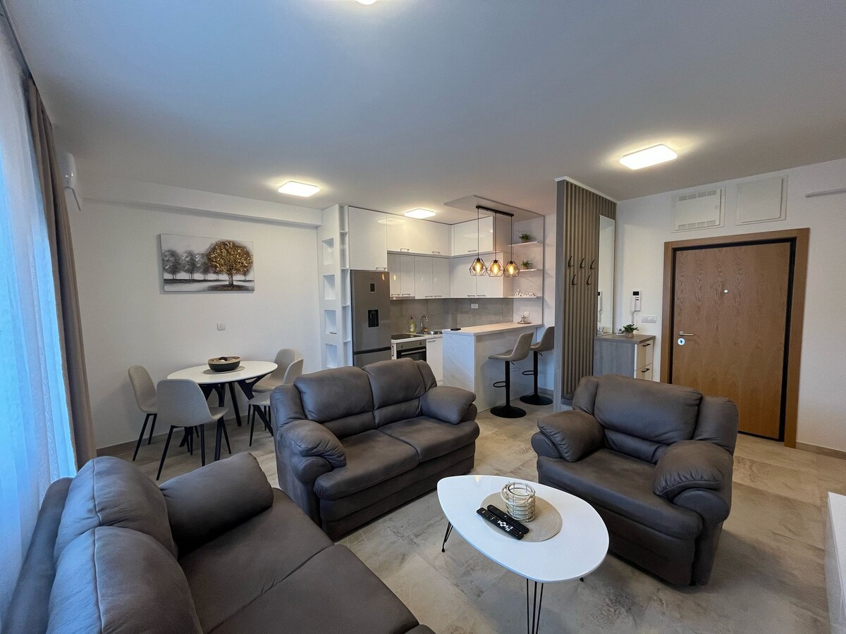 Gaudeix d'un accés fàcil a tots els serveis des d'aquest allotjament amb una ubicació perfecta. El pis nou i modern està situat al centre de Kragujevac, a la regió de Sèrbia Central, i té un balcó. Just al centre, una habitació per dormir, amb una zona de menjador i una cuina, un ampli bany et dona tot el que necessites per a una estada agradable i segura. Aquest pis també té el Certificat Hores de netedat. Volem que t'ho passis d'allò més bé! 🙂 Vine i sigues els nostres primers hostes!
