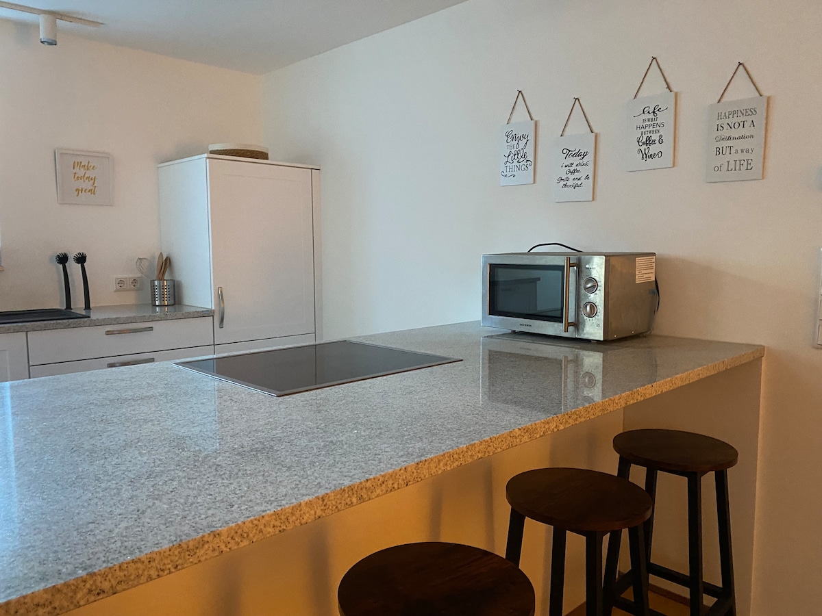 L'espaiós i lluminós apartament de 4 habitacions i 100 m ² amb un gran balcó ofereix tot el necessari per gaudir d'una estada confortable. Hi ha dues places d'aparcament davant mateix de l'entrada. Totes les habitacions són lluminoses i modernament moblades. Tot l'apartament és molt lluminós, tranquil i ideal per descansar o treballar. El bany, lluminós i agradable, està equipat amb dutxa, tovalloles i assecador. A més, hi ha un altre lavabo separat.