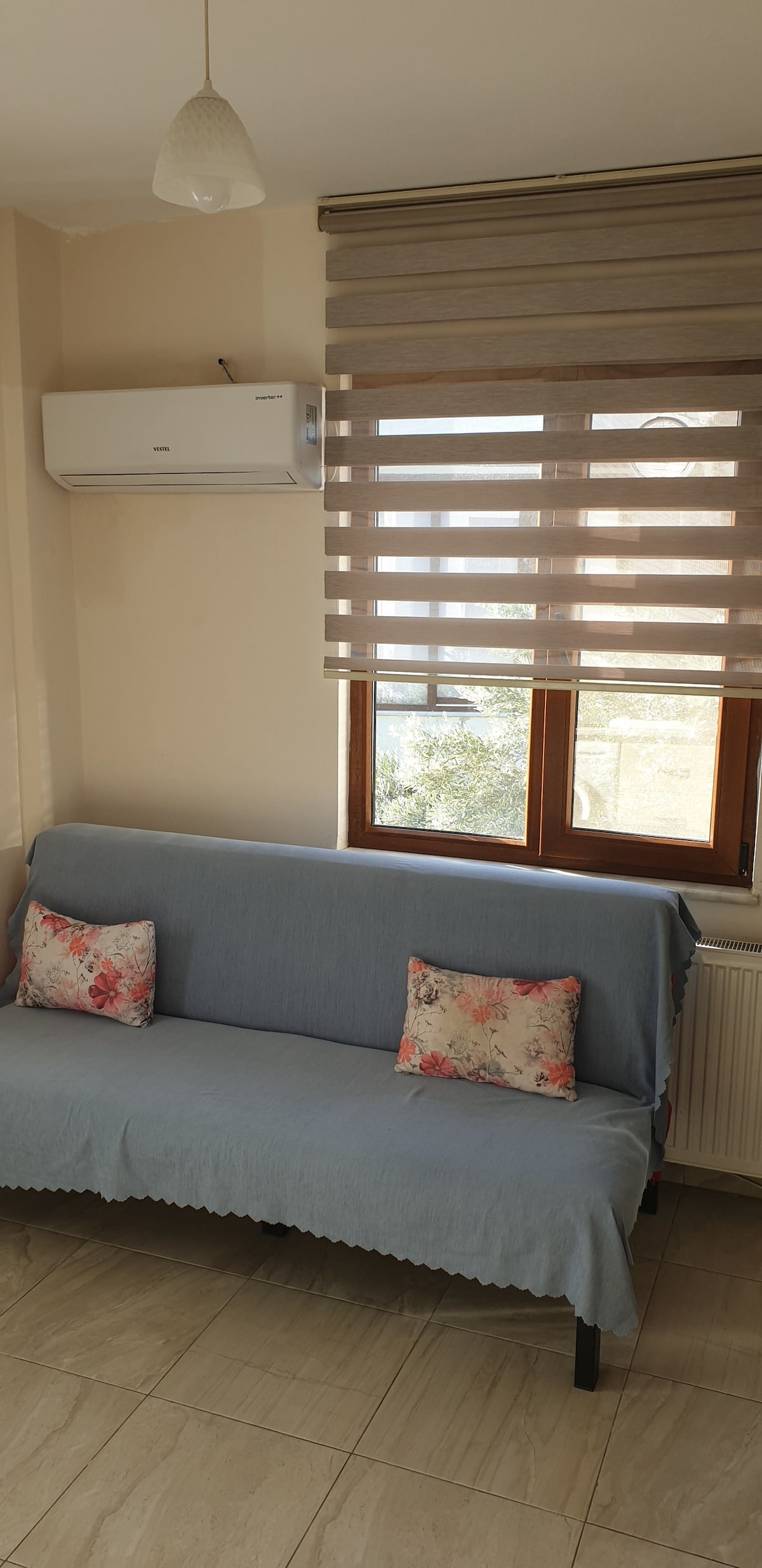 La nostra casa amb vistes a les muntanyes Kaz és adequada per a l'estiu i l'hivern, hi ha un sistema de calefacció central, aire condicionat, un espai de treball, wifi, dos balcons de vidre tancats, 1 balcó obert, persianes elèctriques i mosquiteres, hi ha 2 dormitoris, un amb bany privat. Totes les habitacions tenen llum i vistes al mar. A petició, es proporciona un llit de nadó i un llit individual extraïble. Es troba a 450 metres de la famosa platja d'İğdeli, però a prop de la resta de platges.