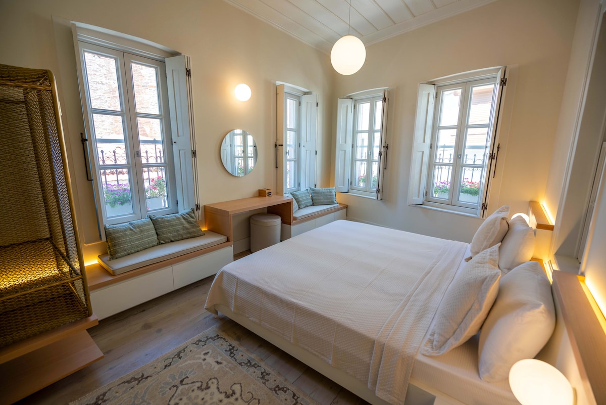 Ayvalık’ın kalbinde, 1910 tarihli, 2025 yılında restorasyonu tamamlanmış tarihi bir Rum Konağı'nda konaklama deneyimi sizi bekliyor. Sebahattin Ali'nin klasiklerinden ''Kuyucaklı Yusuf '' Romanının, film çekimlerinin de yapıldığı bu konak; taş duvarlarının otantik dokusu, yüksek tavanları ve şık tasarımıyla, geçmişin ruhunu, modern bir konfor ve üstün hizmet standartları ile sunmak için sizleri bekliyor...