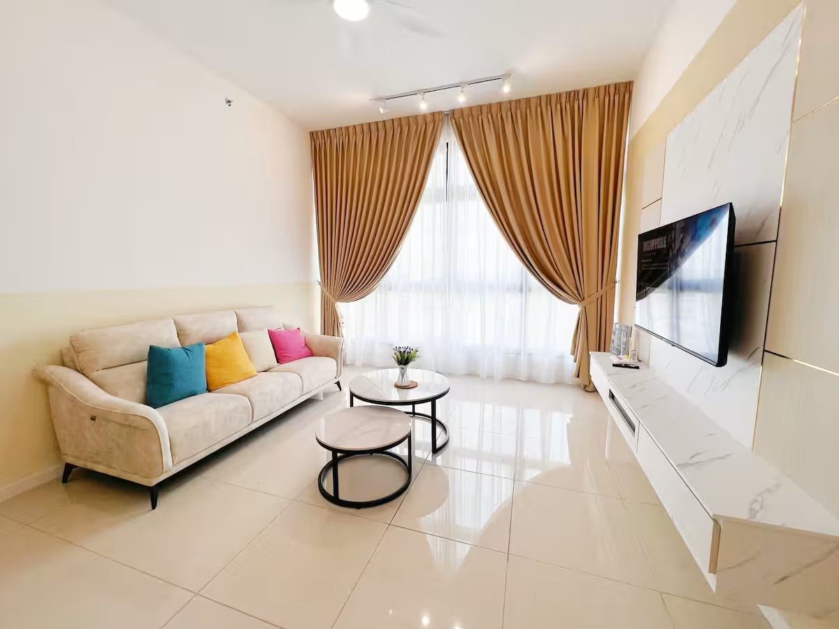 3 Bedroom Paradigm Residence just above Paradigm Mall, elegant, 200 Mbps WIFI gran amb capacitat per a Samsung Smart TV, apartament de gran mida amb gimnàs i piscina a Johor Bahru. Paradigm Mall amb cinema, pista de patinatge sobre gel, tots els principals botigues de restaurants, botigues de moda, supermercat, pubs i instal·lacions de cafè especialitzades (demana'm una llista!). CIQ 14 Min. Legoland a 15 minuts Outlets prèmium a 20 minuts 2 places d'aparcament (1 designat + 1 visitant) No es permet cuinar