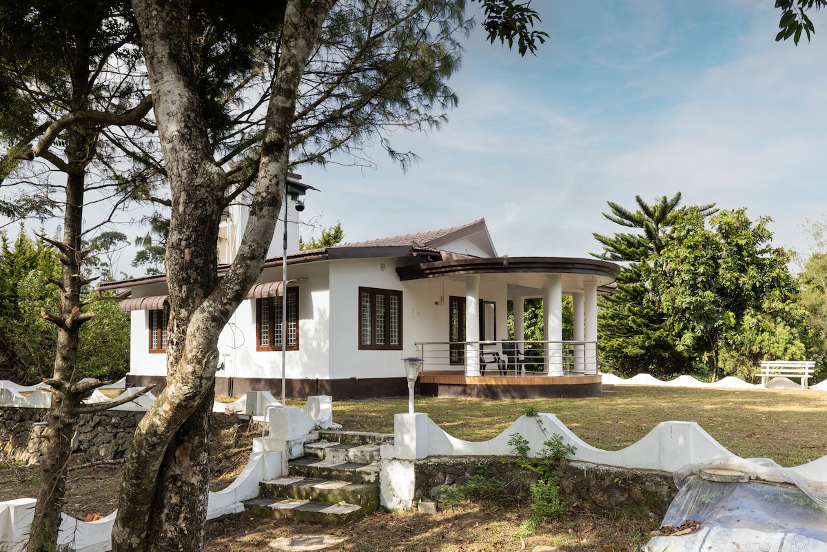 Stone Haven by WanderEase is a two-bedroom stone house nestled in 3.5 acres of lush greenery in Vagamon. Designed by the renowned architect Laurie Baker, this home embodies his "Umbrella Architecture," which blends functionality, sustainability, and beauty. Crafted from local stone, the house harmonizes with its surroundings, reflecting Baker's deep respect for nature. Its stone walls offer rustic charm and durability, which is a model of eco-friendly living and a tribute to Baker's genius.