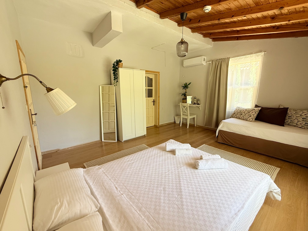 Pots relaxar-te amb la teva família i els teus en aquest allotjament. Una vista espectacular de l'Olympos i la vista a la natura t'esperen. Oportunitat de passejar per la gespa del teu jardí privat. Olympos i Adrasana es troben en una zona comuna que ofereix 10 minuts de transport en cotxe. Els nostres hostes tenen l'oportunitat de fer un recorregut per la natura en bicicleta i encendre una foguera al nostre jardí.