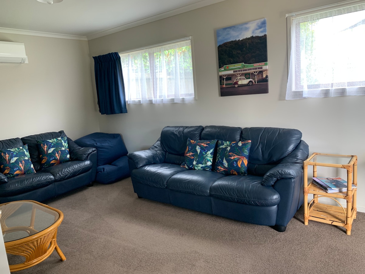 Un bach clàssic a primera línia de platja de kiwi, gaudeix d'unes vistes espectaculars de la platja més apreciada de Nova Zelanda. El nostre bach és autònom, net i còmode. Apte per a famílies petites, parelles o viatgers solitaris. El nostre bach s'adapta a aquells que només volen sortir i gaudir de la platja, el caiac, la pesca, el golf i les aventures sense problemes per preocupar-se per les tasques interiors diàries.