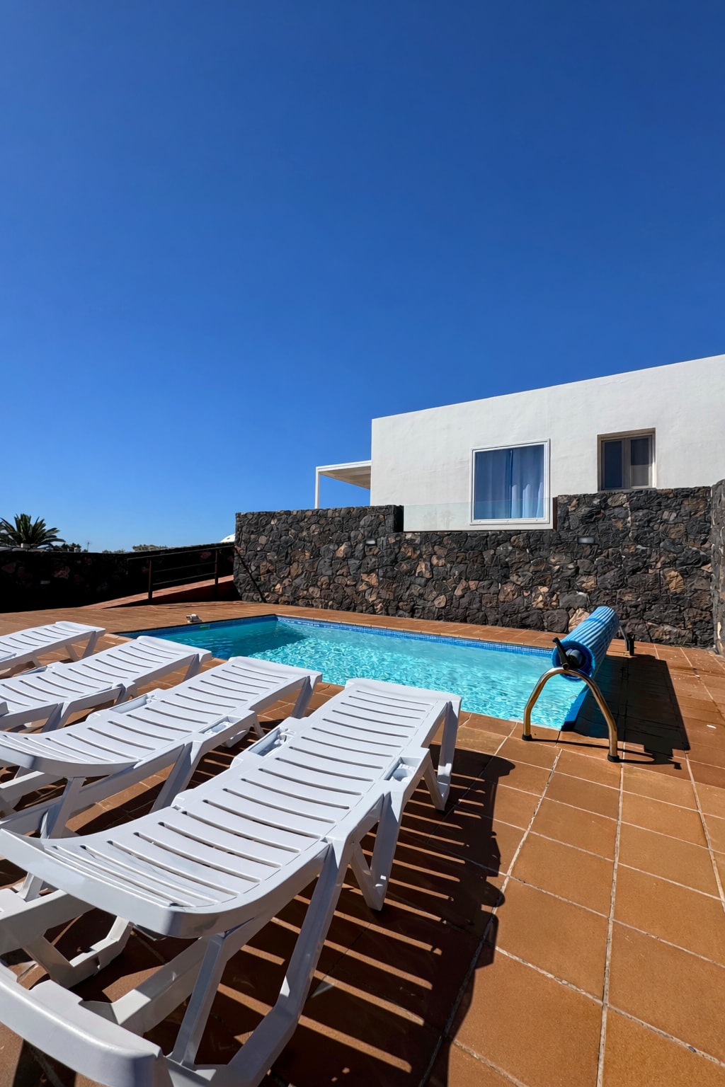 Luxosa vil·la de 2 llits a La Asomada, Lanzarote. Serveis moderns, vistes al mar des de tots els llocs, piscina d'11 metres, piscina infantil, ampli espai d'estar a l'aire lliure i una pèrgola de 15 metres. Entorn rural tranquil, a poca distància en cotxe de Puerto del Carmen, les vinyes de La Geria a prop. Perfecte per relaxar-se i explorar.
