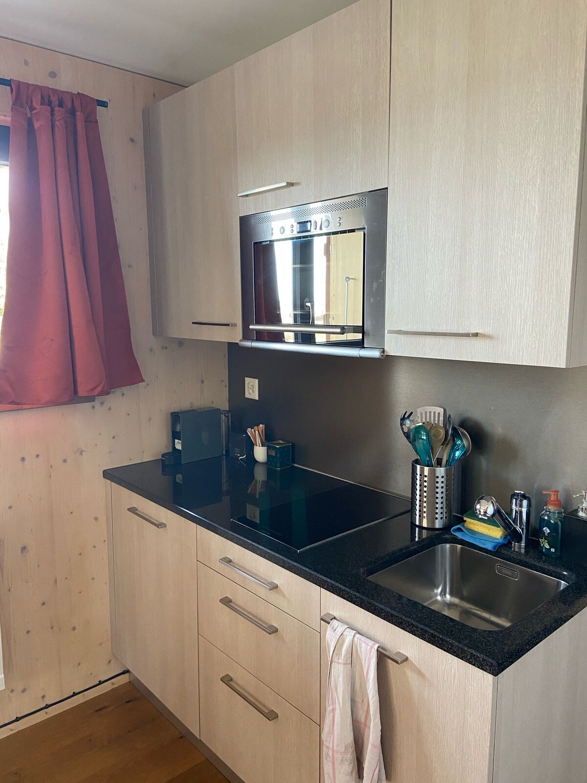 Una joia premiada al llac de Thun. Casa de nova construcció i premiada per l'arquitectura al llac. Experiència en vaixell amb vistes a les muntanyes berneses de Niesen, Stockhorn, Eiger Munch i Jungfrau. Perfecte per a una escapada romàntica o unes petites vacances en família. La sala d'estar, el balcó, la cuina i el bany es troben a la planta baixa. 2 dormitoris es troben al nivell de l'entresol. La terrassa exterior està directament a l'aigua orientada al sud. A 15 minuts en cotxe de Thun.