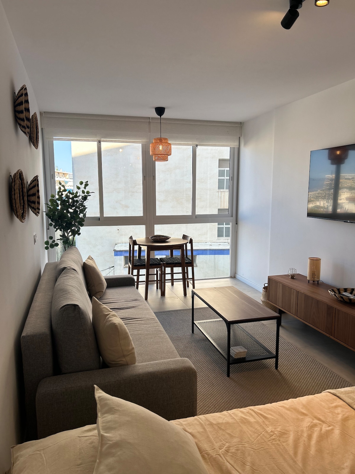 Ampli 1BD amb gran terrassa. Ús de piscina (obertura de temporada), pista de tennis, jardins i accés directe a la platja. Aire condicionat/ calefacció, televisor intel·ligent, altaveu de música de dents blaus i WIFI de fibra òptica. A 5 minuts a peu del centre de Torremolinos i de l'estació de tren de l'aeroport de Màlaga.