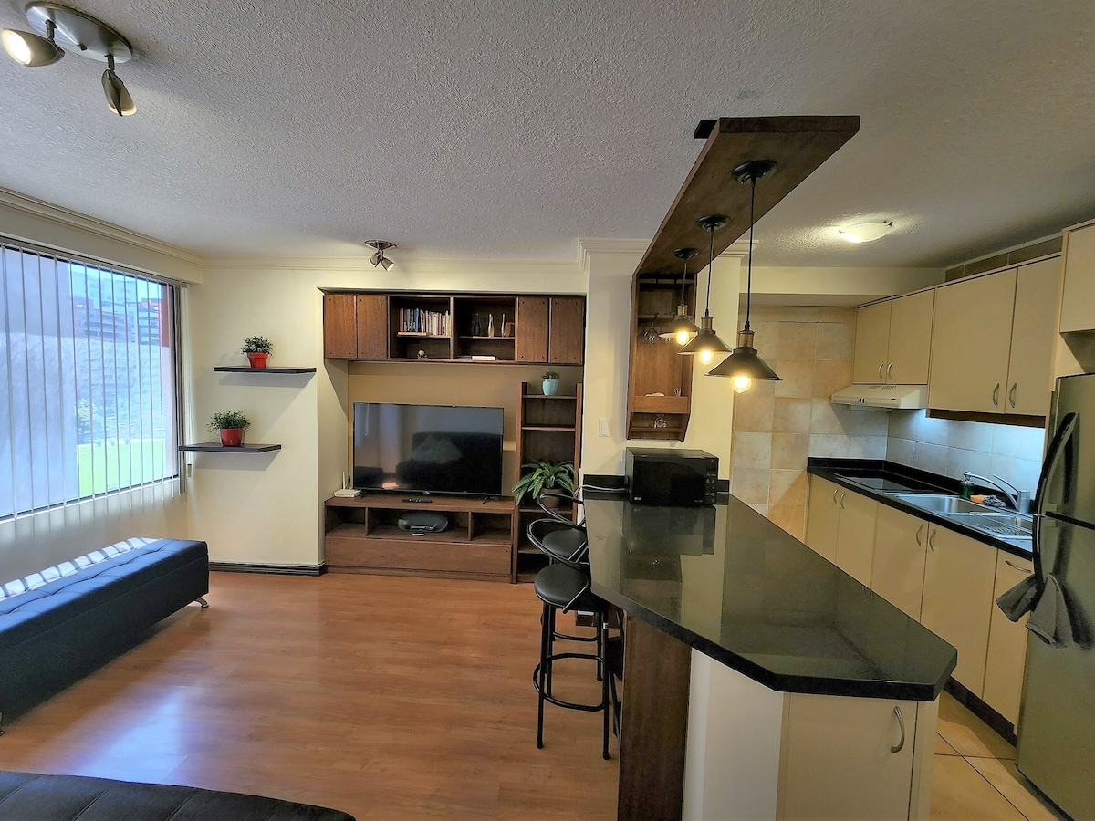 - Suite nova de luxe, espaiosa, còmoda a l'Edifici Eco-eficient - Piscina , sauna , turc, banyera d'hidromassatge , gimnàs, aplicació per utilitzar zones (subjecte a reserva segons la disponibilitat de l'edifici) - Ubicat a la millor zona de Quito, zona segura amb fàcil accés amb vehicle i transport públic. - Puntuació 87 a peu, a prop de tots els passejos , més de 200 negocis (restaurants de luxe, centres comercials, farmàcies, llocs turístics i parcs)