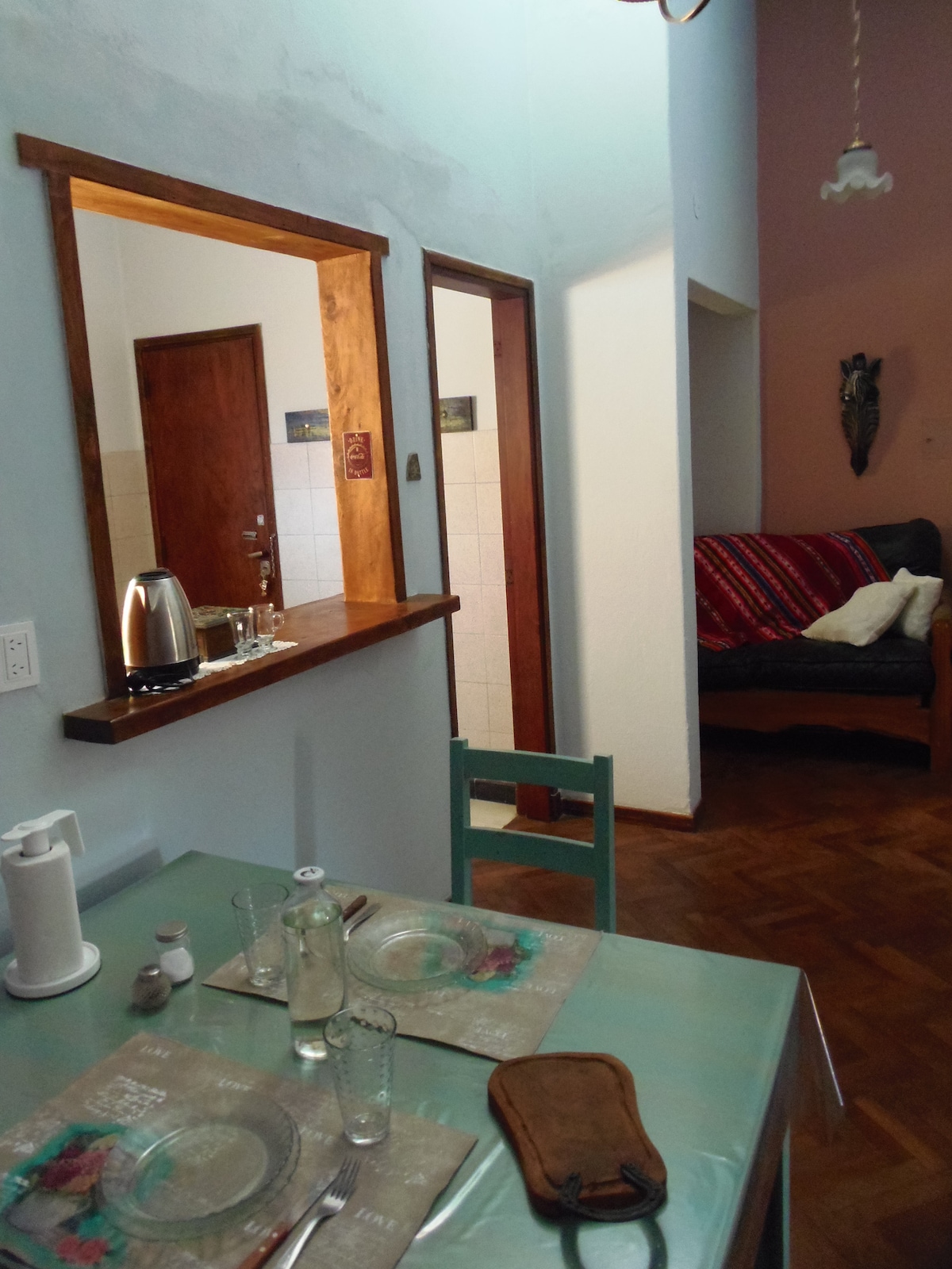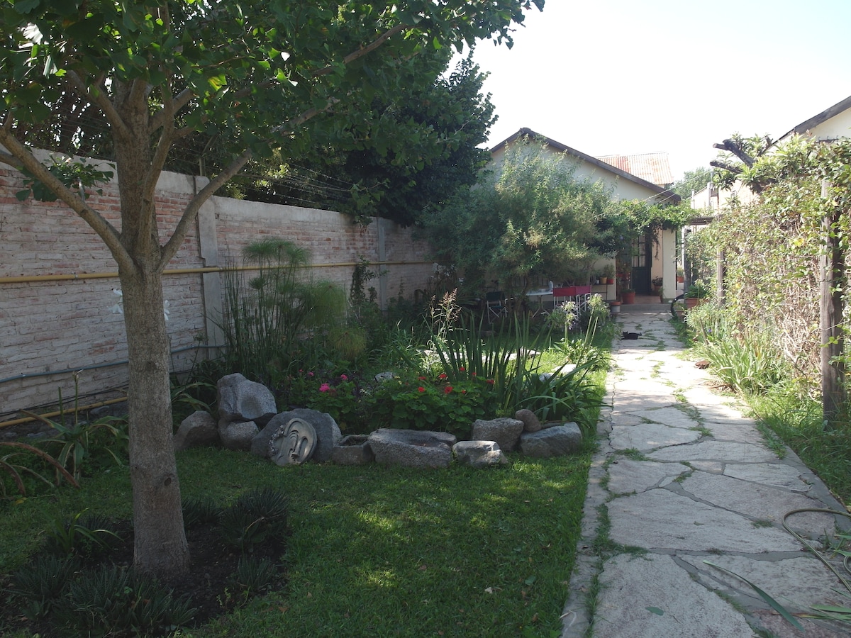 És un pis estudi davant del riu, en un parc de mil metres. A deu minuts de la capella. Molt fàcil accés al riu i als autobusos. No es comparteix, però vivim a prop per a qualsevol cosa que puguis necessitar. Disposa d'una cuina ben equipada, aire condicionat, wifi, Android TV, nevera, cuina amb forn, cuina de gas, ventilador, espatlla, termotanques, llençols i tovalloles; a l'exterior, una barbacoa, butaca, cadires i taula, hamaques per a para-sol i un garatge amb sostre. Opcional: bugaderia, massatges i teràpies. Ideal per a 2 persones, màxim 3 (parella amb nen).