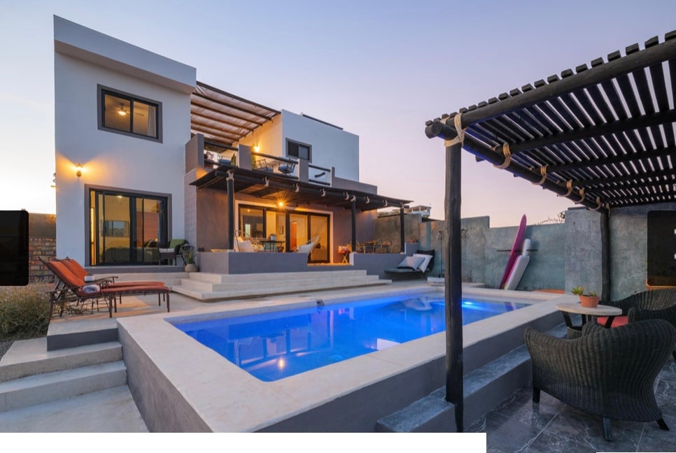 Una casa de luxe exquisida que ofereix una experiència inigualable a peu de platja. Pezula Beach és una casa de nova construcció del 2023, contemporània, privada, respectuosa amb el medi ambient, segura i a peu de mar a l'est del Cap Cabo. Una casa de somni amb aire condicionat amb piscina d'aigua salada, cuina i menjador interior a l'aire lliure, marbre a tot arreu, 3 dormitoris i 3,5 banys, capacitat per a 6 adults i 4 nens còmodament, foguera, taula de ping-pong, taules de surf de rem i personal a l'allotjament. Aquesta encantadora escapada es troba a 30 minuts del centre de San José del Cabo.