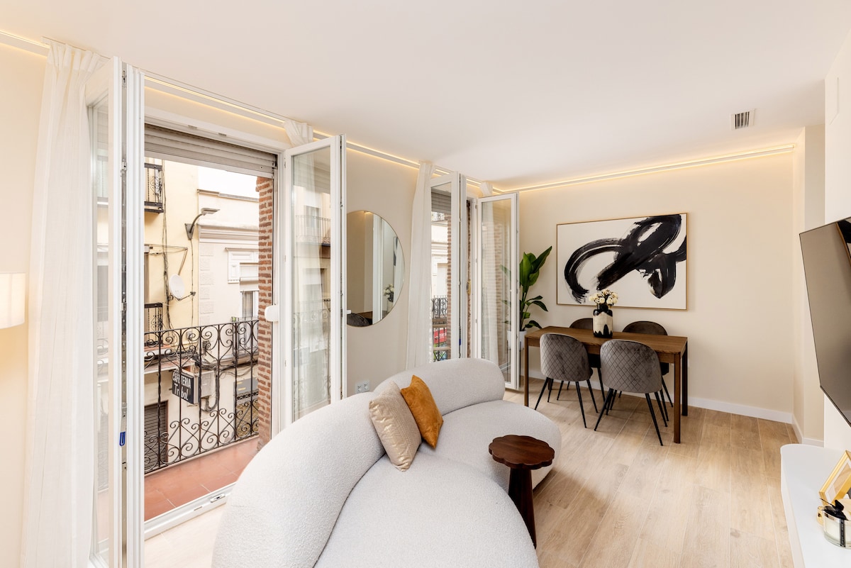 Elegant, clàssic i ampli pis espanyol, totalment reformat dins d'un edifici històric al exclusiu Barri de les Letras de Madrid. Combinant un encant autèntic amb un disseny modern, inclou esmorzar i neteja gratuïts per a estades de més de tres dies. A pocs passos dels museus, llocs d'interès cultural i restaurants elegants de Madrid, aquest pis ha aparegut en revistes de disseny principals com un autèntic aparador de la vida autèntica de Madrid.