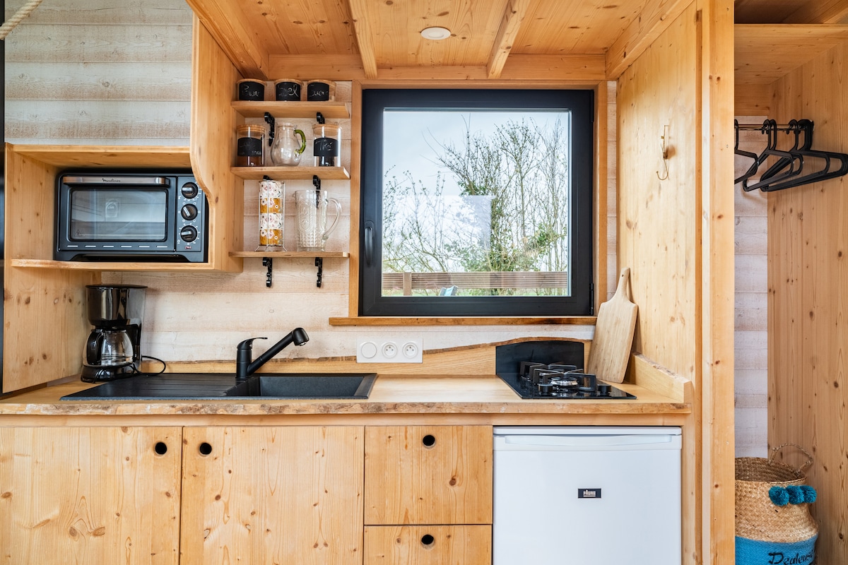 Escapa't en plena natura i els ocells canten. Ens oblidem dels televisors, la wifi, anem a la terrassa de 30 metres quadrats al voltant de la minicasa, la caixa forta de jocs de taula, la caixa forta de jocs a l'aire lliure, el parc de cabres nana, les gallines... El preu inclou la roba de llit, les tovalloles i els impostos turístics. A 30 minuts es pot veure el Mont Saint Michel, Saint Malo, Dinan, Fougères, Rennes... i a Bazouges la Perouse molts llocs per a joves i grans!