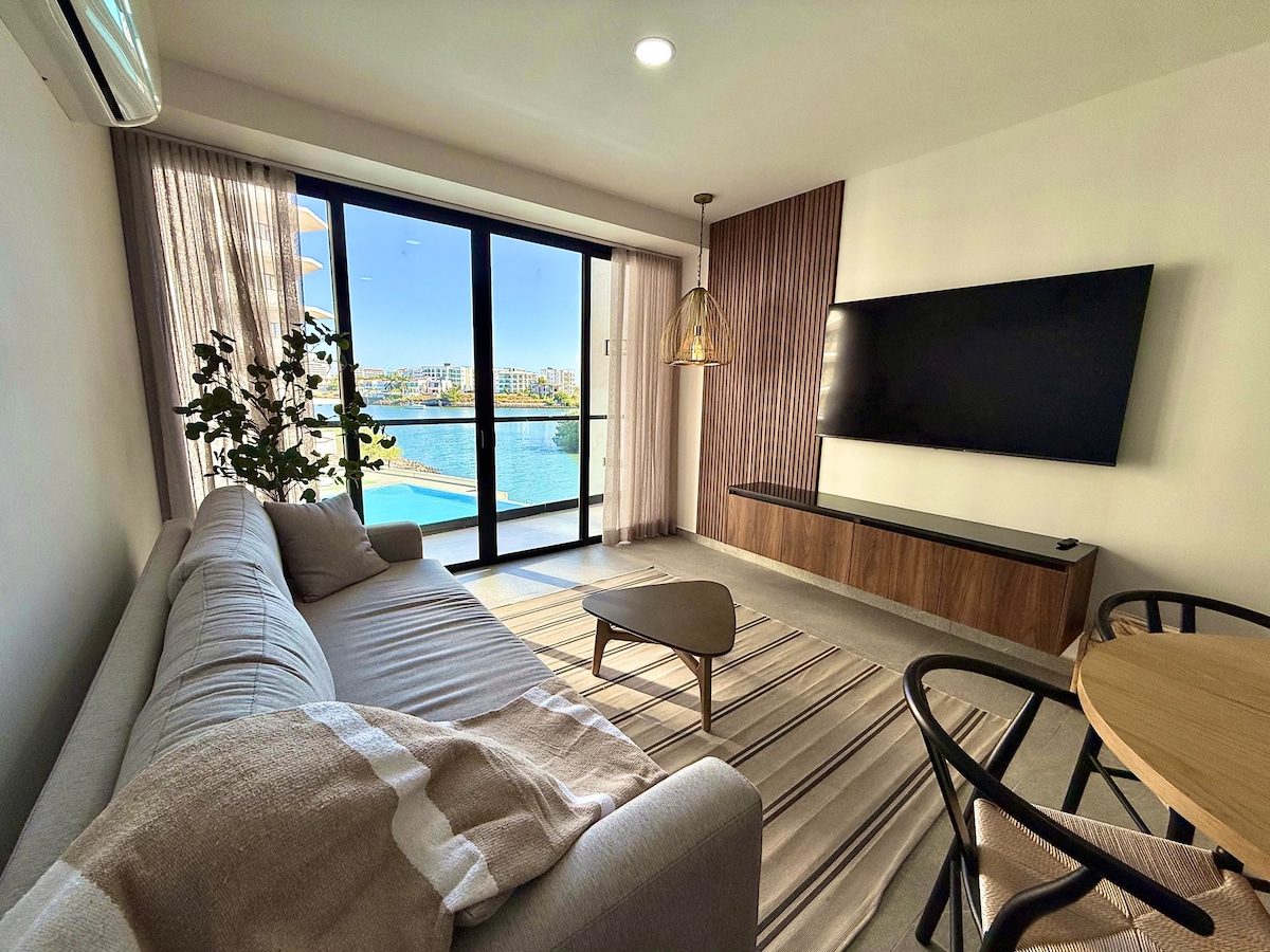 Pis de dues habitacions a Marina Mazatlán, davant del Centre de convencions i a dos minuts de la Plaça Galeries i Walmart. L'edifici disposa de dues piscines, una amb vistes al camp de golf i un gimnàs. Les platges de Cerritos i Zona Dorada es troben a poca distància a peu i es beneficia d'estar ubicades en una zona de gran tranquil·litat.