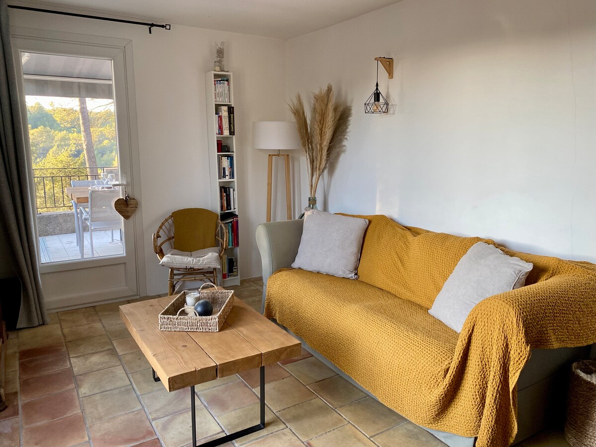 Preciós estudi moblat de 21 m² amb bany-WC, a la planta baixa d'una vil·la, amb terrassa privada de 16 m², en un pintoresc poble al centre de Var, a 30 km de la costa i de les Gorges du Verdon. Cuina integrada i molt ben equipada, llit per a 2 persones de 140x190, sofà de 2 places convertible en llit de dia o llit d'una plaça per a nens. Televisió per satèl·lit TNT. Aire condicionat. Rentadora i rentaplats, diversos serveis i productes inclosos. No es permet fumar ni portar animals de companyia. Puntuació de 2 estrelles a les Gîtes de France.