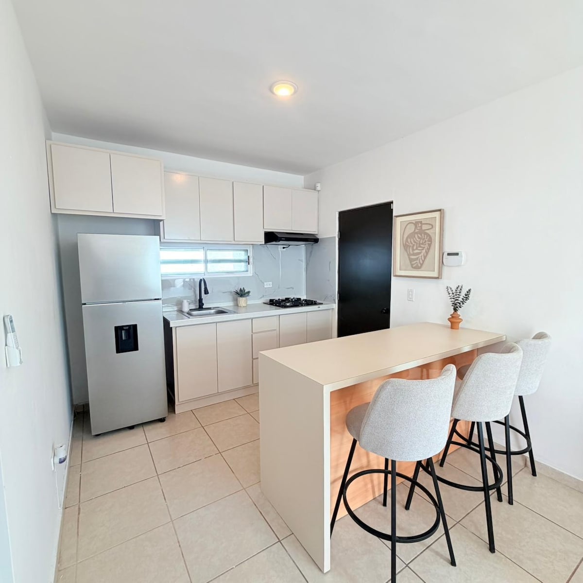 ideal per a famílies, viatges de negocis, a prop del nou centre de la ciutat. * bonica cuina integral. * 3 televisors amb Netflix, Roku. * internet (wifi🛜) * Aire condicionat.❄️ * Taula de centre amb un ric cafè de cafè de cortesia, crema i sucre.☕ *Nevera. * NO ES COBRA CAP SERVEI DE NETEJA. * aparcament propi🚗 *Vídeo. 🎮 *Planxa i taula de planxar * Assecador de cabells * Sala de televisió * aigua calenta ♨️ * 2 dormitoris, 1 llit per a persones i 2 llits individuals. * Capacitat per a 4 persones