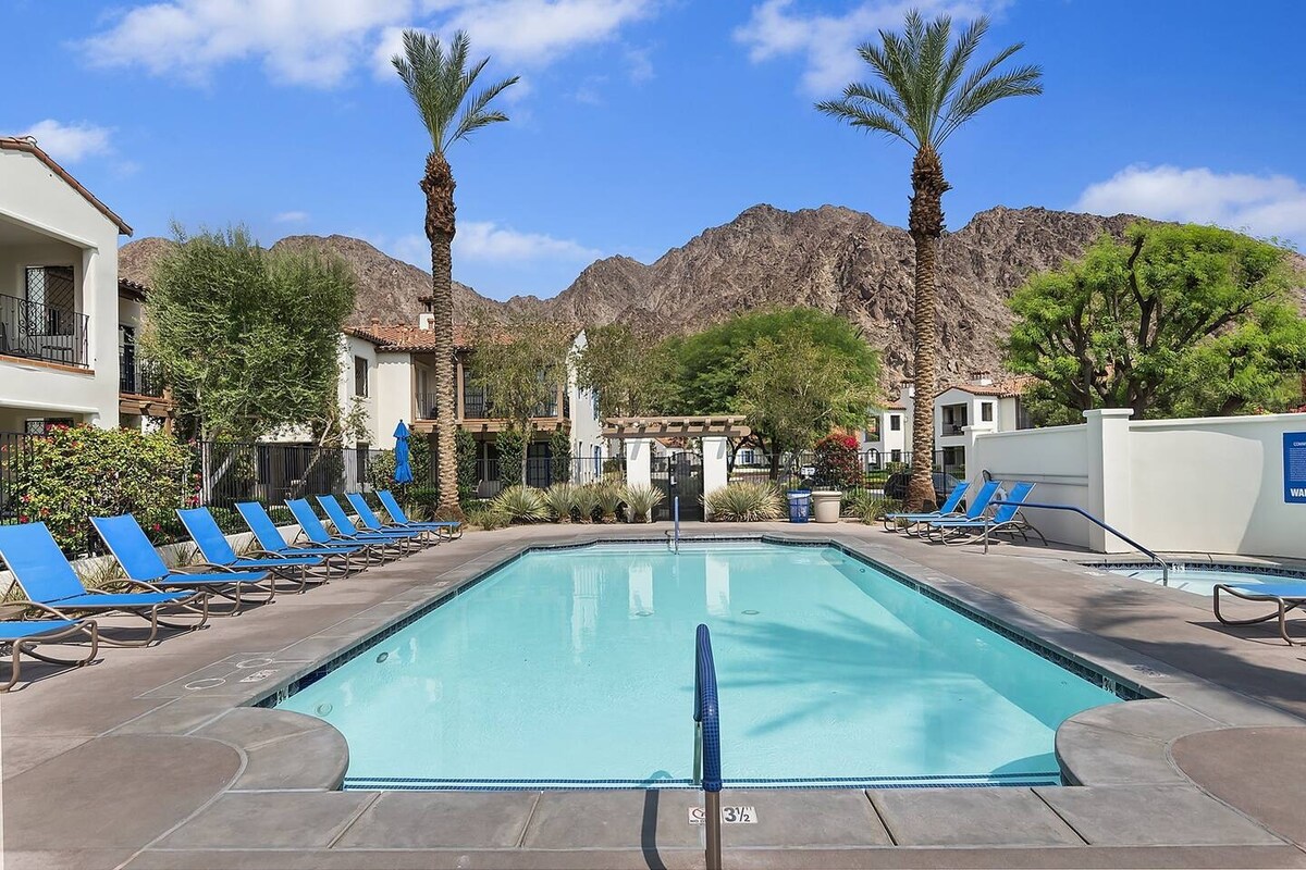 064225-This private, fully furnished suite features a spacious bedroom with a luxurious King bed, bathroom with soaking tub, a private terrace, fireplace, high-speed WIFI, and cable. Enjoy resort-style living with 12 salt-water pools featuring cabanas, a beach entrance kids pool with a splash play area, a hammock garden, Jacuzzi's, a fully-equipped gym, and a 13K sq ft clubhouse. Only 1 block away from The La Quinta Resort @laquinta @legacyvillas @coachella @stagecoach @BNP