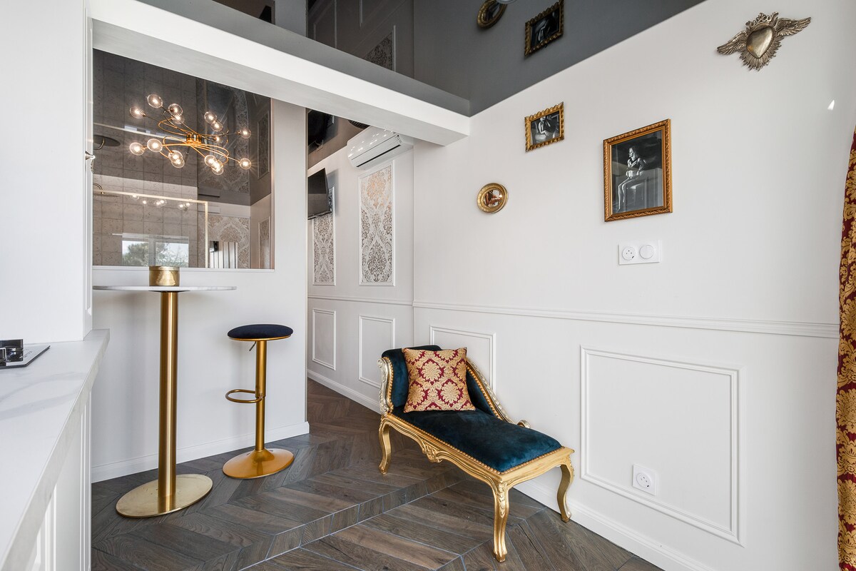 Et recomanem que facis un descans en aquest niu d'amor, elegant i glamurós. L'allotjament acaba de ser reformat des del terra fins al sostre per a la teva comoditat. Gaudiràs dels jocs de llums, roba de llit nova i d'alta qualitat i de la seva decoració barroca. Aire condicionat per a nits calentes d'estiu, l'allotjament consta d'una entrada amb armari, una petita cuina equipada, una magnífica dutxa oberta al dormitori i una terrassa encantadora amb vistes al port.