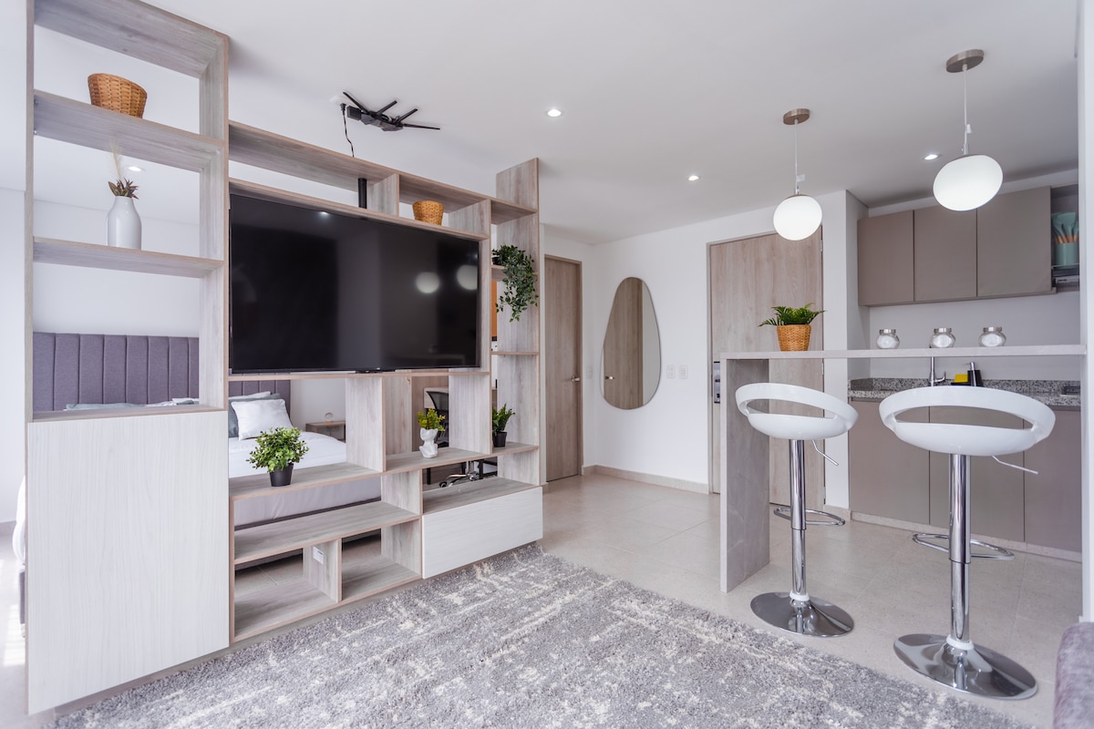 Descobreix l'excepcional comoditat de la nostra suite, dissenyada per a una estada inigualable. Equipat amb tots els serveis necessaris per a viatgers sols o en parella, incloent-hi serveis d'alta qualitat. A més, la teva mascota és benvinguda en aquest espai! Estem situats a poca distància a peu de la Clínica Shaio de Bogotà, reconeguda pels seus serveis mèdics especialitzats en assumptes del cor. Gaudeix també sense sortir de casa des del gimnàs, del coworking i de les sales de reunions privades.