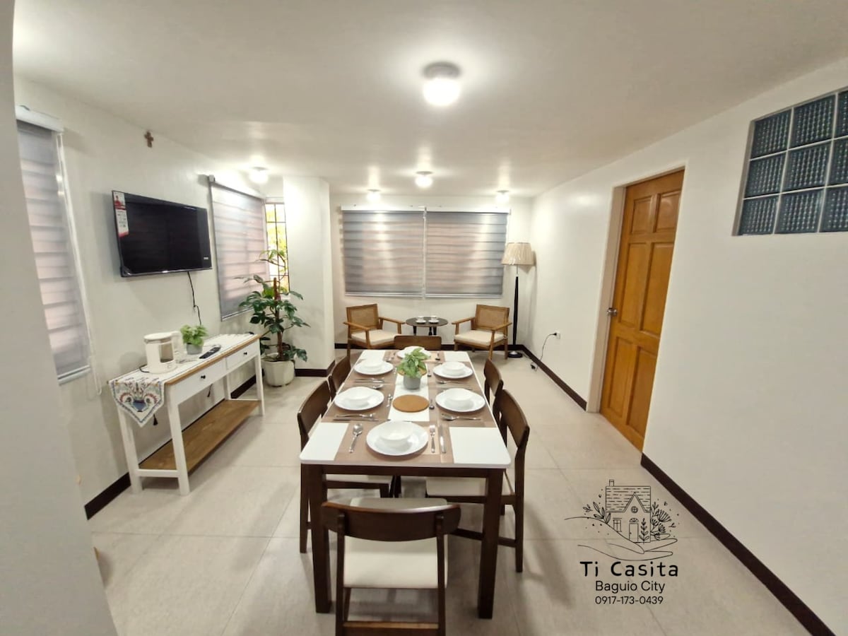 1. 1 dormitori de nova construcció amb loft 2. Molt a prop de llocs turístics populars (a 3-5 minuts de botànica,mansió, etc.) 3. Tots els electrodomèstics i mobles són nous 4. Televisor intel·ligent de 55 polzades amb netflex, escalfador de dutxa, estris per menjar i cuinar 5. S'ofereixen roba de llit, incloent-hi tovalloles i 1 dia de subministrament d'articles de bany. 6. Al llarg de la carretera principal i a 50 metres de la terminal de jeepny. 7. Barri tranquil i envoltat de pinetrees 8. Aparcament tancat fins a 5 cotxes 9. L'hora d'arribada és a les 14:00. La sortida és a LES 11:00.