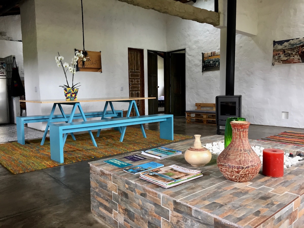 Casa de camp recentment reformada en una petita i bonica finca a les afores de Guasca. Un lloc perfecte per explorar el famós parc de Chingaza, la pintoresca ciutat de Guatavita o simplement per relaxar-se en plena natura durant un cap de setmana. La casa té un toc molt personal amb bona part dels mobles, l'art i els accessoris fets a mà. L'explotació té accés a la carretera principal fent-la accessible en cotxe o transport públic. Al final de cada dia, escalfa't al costat de la xemeneia i gaudeix de les tranquil·les nits de Guasca.