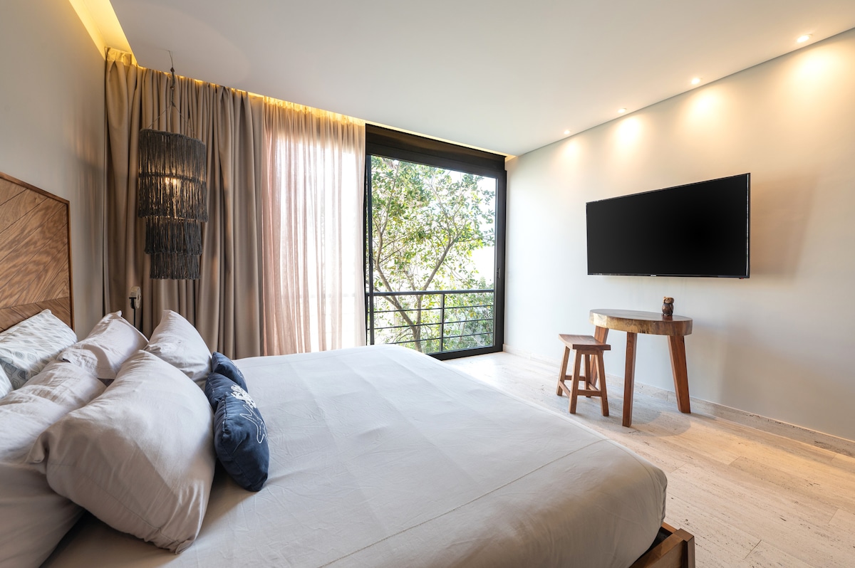 La teva casa de vacances lluny de casa; ideal per a parelles, nòmades digitals o viatgers en solitari. Amb internet ràpid, dormitori amb llit king size, unitat d'aire condicionat, cuina americana i piscina al balcó. Tindràs accés a zones comunes increïbles, com ara la piscina al terrat, els jacuzzis i molt més. Una de les ubicacions més còmodes, a poca distància a peu d'alguns dels millors restaurants, botigues i supermercats; i a prop de la platja. Tindràs tot el que necessites per viure l'experiència de Tulum.