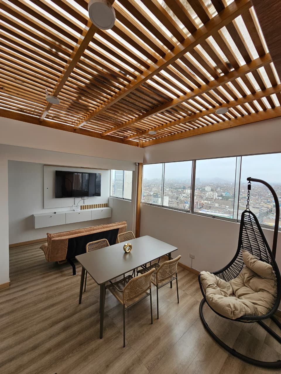Preciós terrat intel·ligent Loft al centre de Miraflores, té una vista fantàstica, una ubicació fantàstica, privacitat i seguretat. Aigua calenta il·limitada a la banyera d'hidromassatge (Calefactor millorat recentment sept-22) per la qual cosa la banyera d'hidromassatge serà CALENTA garantia, Mitja cuina, TV LED amb cable, Wifi Ràpid i fiable. a poca distància dels supermercats, i tot. només hi ha un desavantatge seu a la 6a planta sense ascensor, però val la pena per la vista. Pots controlar la televisió, la música,les persianes i les llums amb l'Àlexa.