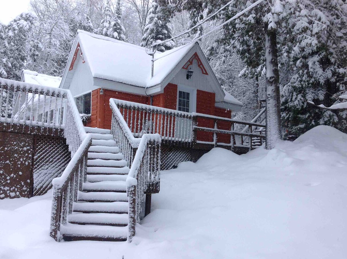 Xalet envoltat d'arbres, situat en un carrer tranquil a prop del llac Chantelle i del riu Jean Venne. Dues habitacions tancades, cuina totalment equipada, estufa de llenya (de llenya). A prop: Spa La source a Rawdon, Arbraska course, Montcalm ski mountain, Ouareau Forest Park (senderisme, esquí de fons, raquetes de neu, escalada). *Wifi i preus assequibles els dies laborables per treballar a distància.