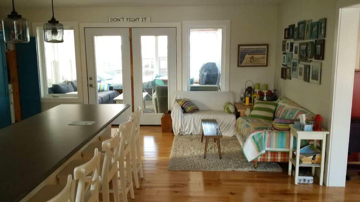 Diverteix-te amb tota la família a la nostra moderna casa rural a prop de la platja. A poca distància a peu de la platja, el nostre espai apte per a gossos compta amb comoditats per a tothom. Aquesta moderna casa rural va ser dissenyada per a una família gran o per a dues famílies. 3 dormitoris, 2 banys, incloent-hi una llitera per als nens i una sala de fang amb gossos incorporats i un bany per a gossos. El pati del darrere té una gran terrassa a la planta baixa amb dues barbacoes, seients i menjadors, així com una zona de foguera amb molts seients.