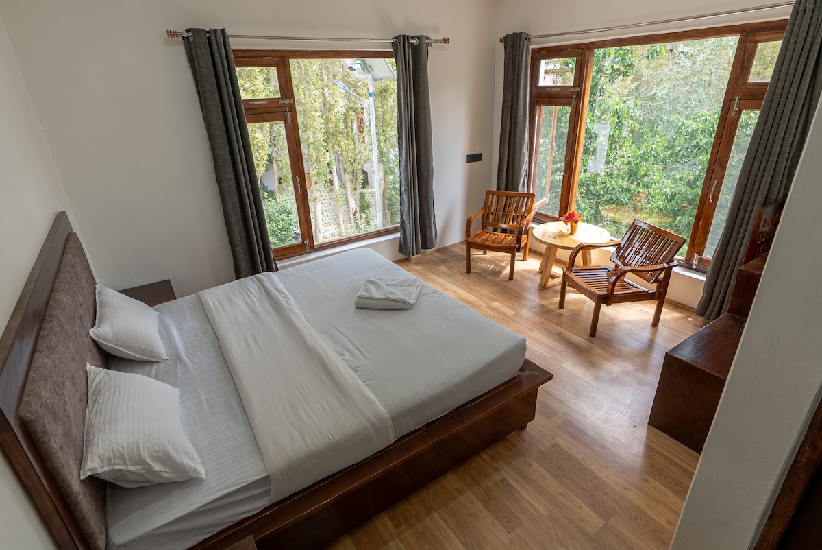 🌿 Et donem la benvinguda a Tsao by the Orchard: una estada acollidora al cor de Leh. Un allotjament dissenyat per a la comoditat, amb un dormitori assolellat, una cuina moderna i un vestíbul minimalista. A només uns minuts del mercat de Leh i de la Shanti Stupa, però amagat en un carrer tranquil. Gaudeix d'uns passejos per la nostra plantació de préssecs i pomes i d'àpats casolans de Ladakh a petició. Un espai amb ànima, dissenyat per fer-te sentir com a casa.