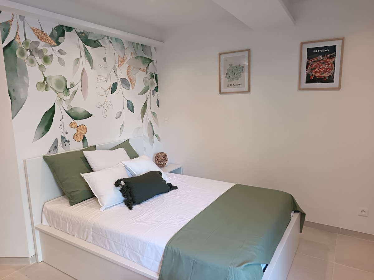Casa independent, còmoda, espaiosa i elegant al cor de la natura. Ideal per a un descans bucòlic en un entorn esplèndid, propici per relaxar-se i descansar. Aquest allotjament és adequat per treballar a distància. També pots gaudir de la bulliciosa vida del sud-oest, els seus mercats nocturns, la seva gastronomia i la seva cultura. Ubicació: a 20 minuts d'Agen, a 15 minuts de Villeneuve sur Lot, a 10 minuts de Prayssas, a 10 minuts de la platja de Castelmoron, a 30 minuts del llac Lougratte i a 50 minuts de la base nàutica de Casteljaloux.