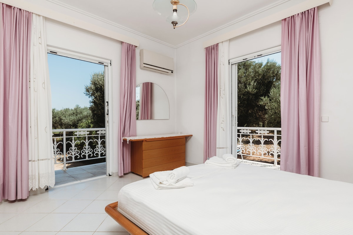 Casa encantadora envoltada de natura , a 15 minuts a peu de la platja, amb una terrassa panoràmica exclusiva. Aquí és on la modernitat i la proximitat a la natura es troben. Bellament situat en una muntanya amb oliveres en una propietat privada espaiosa amb jardí. La propietat és ideal si busques tranquil·litat i vols una vista panoràmica única del mar. La propietat ofereix comoditats modernes amb tot el confort modern - ara també amb dutxa exterior