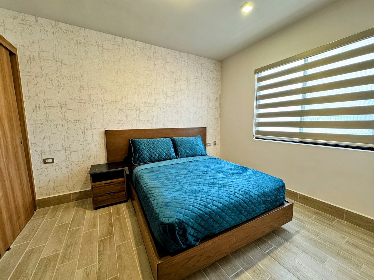 Et donem la benvinguda a "Piso-H", un estudi executiu exclusiu en dos nivells, situat en una zona residencial destacada i pràctica. A la planta baixa, trobaràs una minicocina totalment equipada, menjador per a dues persones i un bany complet. Al segon nivell, un dormitori acollidor amb llit doble, armari, minisplit, televisor intel·ligent, wifi d'alta velocitat i bocina Bang & Olfsen. Inclou tots els serveis necessaris per gaudir d'una estada agradable a Chihuahua.